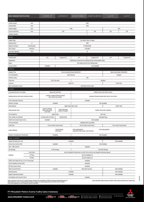 Masih menggunakan mesin bensin 1.5L MIVEC DOHC 4 silinder yang mampu menyalurkan tenaga 105 PS dengan torsi 141 Nm. Pembaharuan pada generasi baru Xpander ini terletak pada penggunaan transmisi CVT yang lebih halus dan suspensi baru.